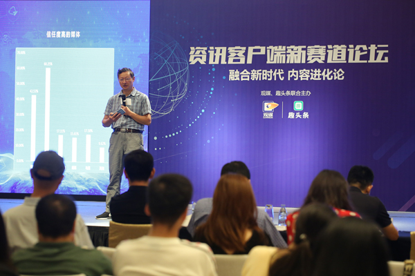 2019年8月8日下午,第五届观媒峰会的分论坛“资讯客户端新赛道论坛”举办。中国人民大学新闻传播学院教授匡文波以“新融合 传统媒体与新媒体平台的融合之路”为题发表演讲。