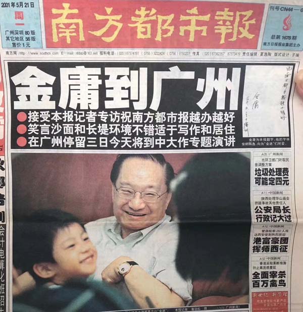 2001年5月,金庸在广州接受《南方都市报》记者采访并题词