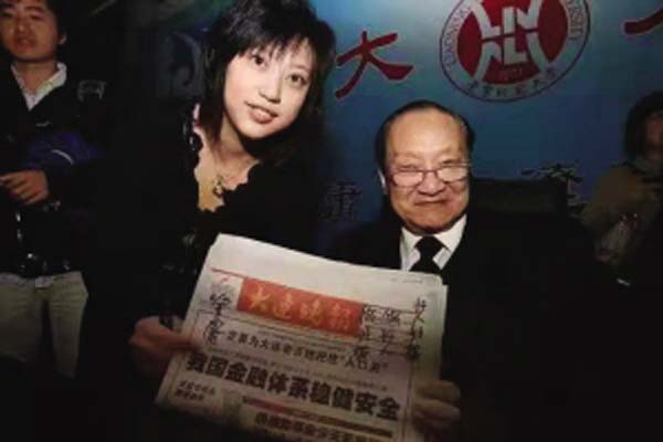 十年前,金庸与《大连晚报》记者合影。