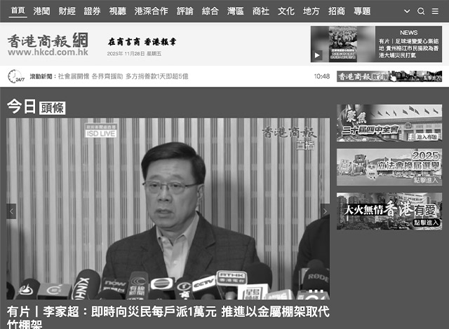 香港商报网首页变灰
