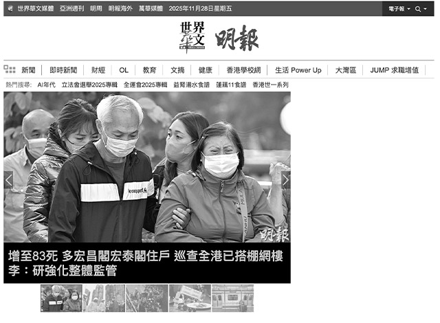 《明报》网站首页变灰