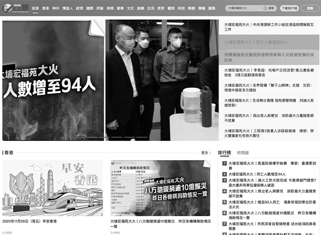 香港文汇网首页变灰