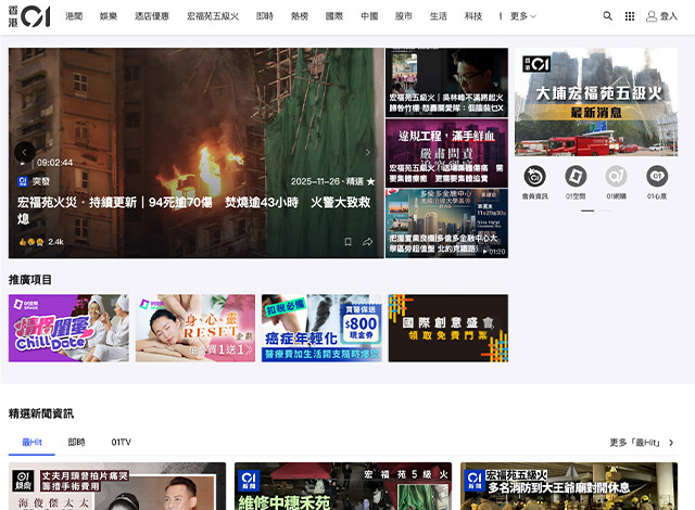 香港01网站LOGO变灰